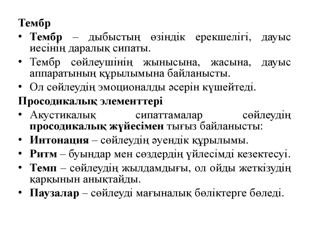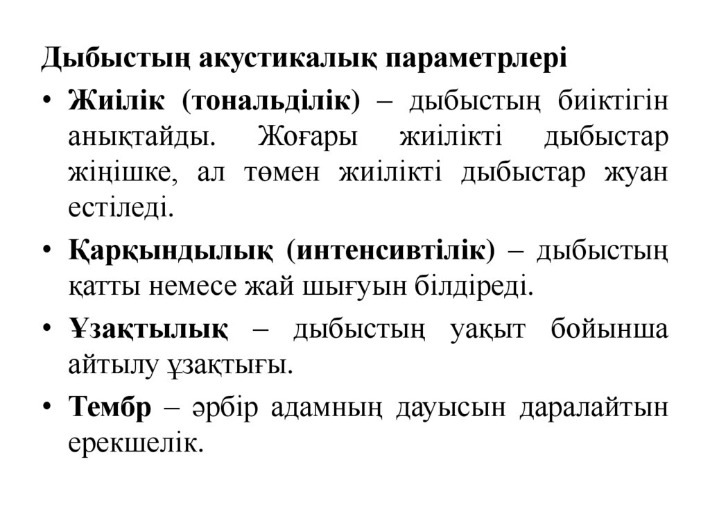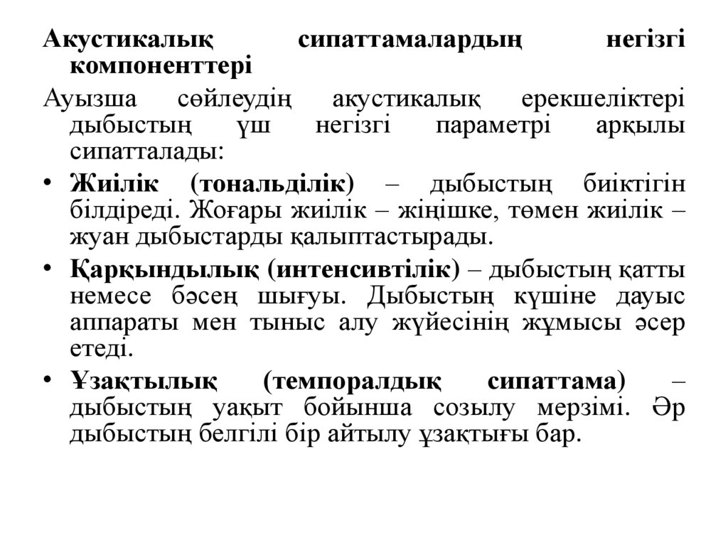 ерекшелігі бар. Дыбыстық сипаттамалар