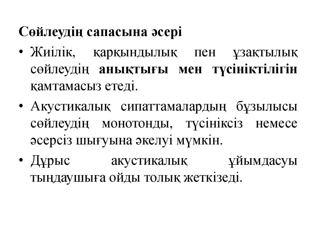 Сөйлеудің сапасына әсері• Жиілік, қарқындылық пен ұзақтылық