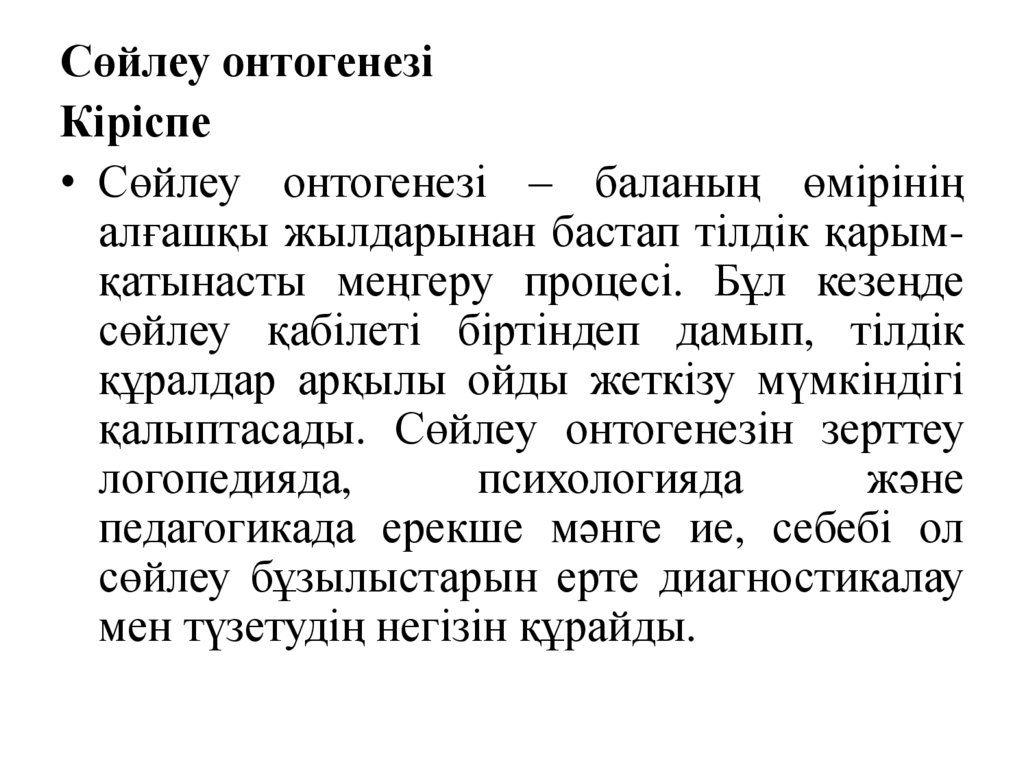 қалыптасады. Сөйлеу онтогенезін зерттеу