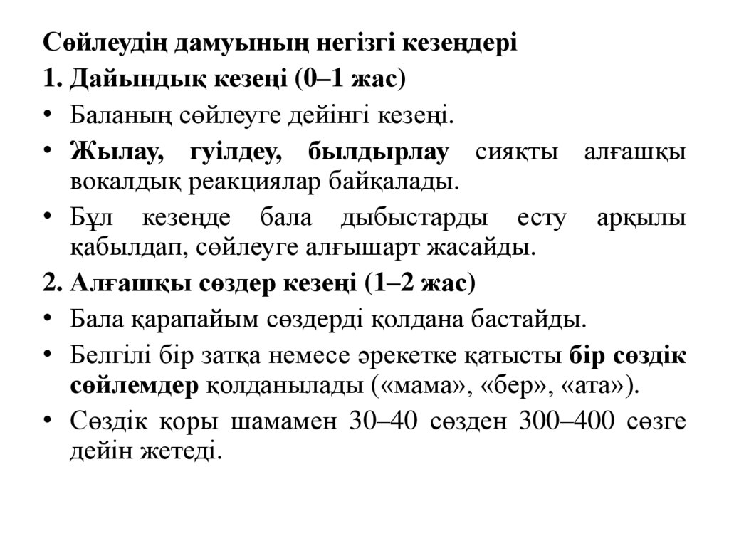 Сөйлеудің дамуының негізгі кезеңдері1. Дайындық кезеңі (0–1 жас)