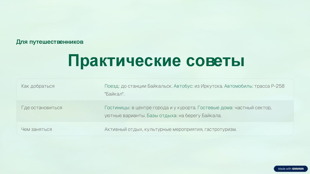 Поезд: до станции Байкальск. Автобус: из Иркутска. Автомобиль: трасса Р-258