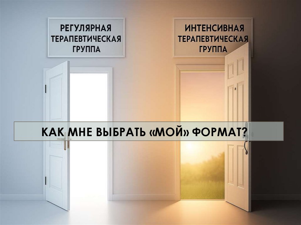 КАК МНЕ ВЫБРАТЬ «МОЙ» ФОРМАТ?12. РЕГУЛЯРНАЯ ТЕРАПЕВТИЧЕСКАЯ ГРУППА ПО ВТОРНИКАМ ДЛЯ ТЕБЯ ЕСЛИ: