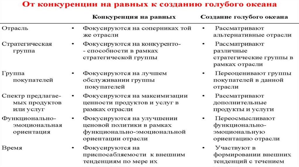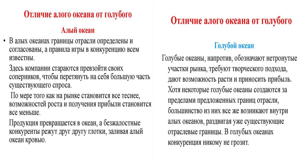 5. Океан «голубой» потому, что он чист, глубок и полон возможностей. Задача компании — найти и создать такой океан. Пример:.