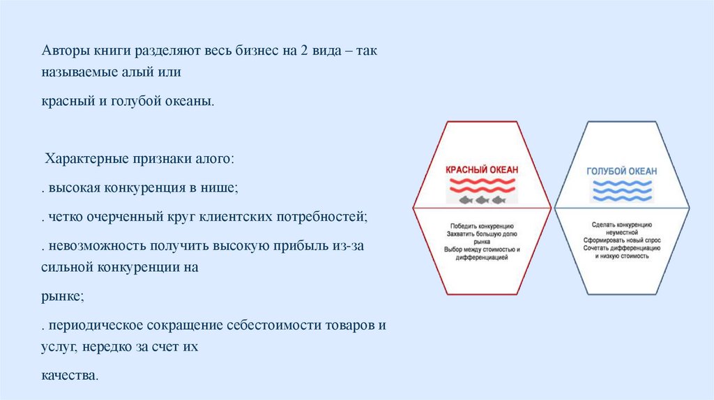 Авторы книги разделяют весь бизнес на 2 вида – такназываемые алый или