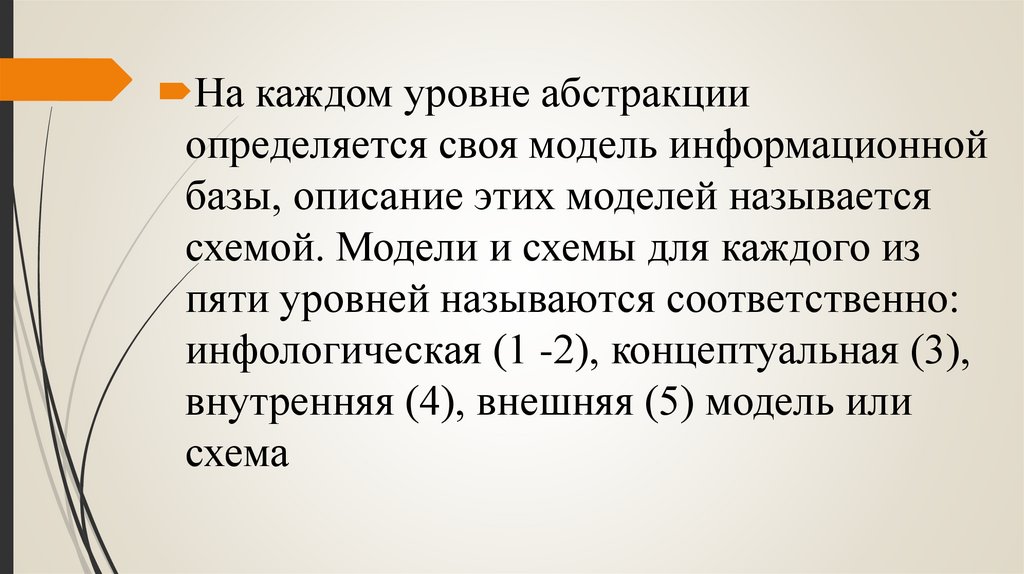 Архитектура ИС включает несколько уровней представлений (абстракции):1. Информационный уровень – представления конечных пользователей о