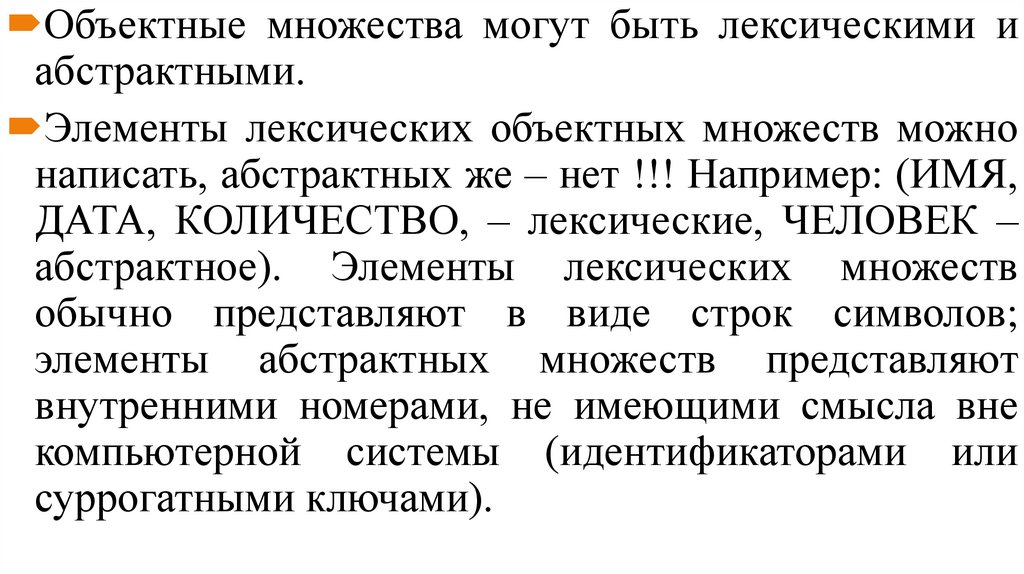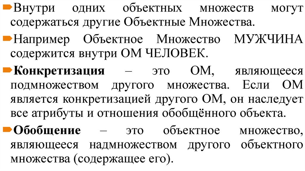 Внутри одних объектных множеств могутсодержаться другие Объектные Множества.
