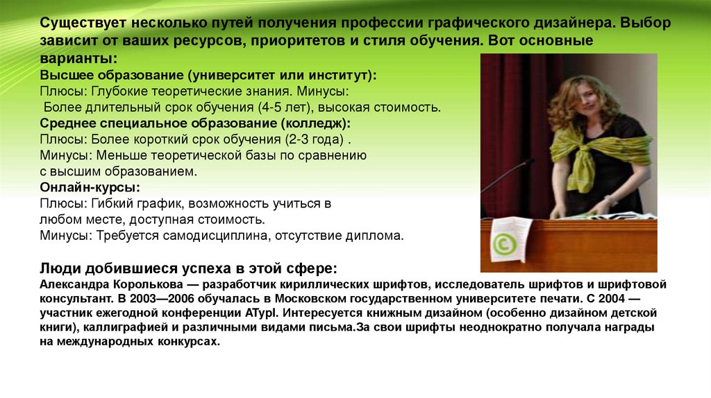 Существует несколько путей получения профессии графического дизайнера. Выборзависит от ваших ресурсов, приоритетов и стиля обучения. Вот основные