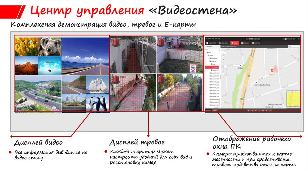 Центр управления «Видеостена»Комплексная демонстрация видео, тревог и E-карты