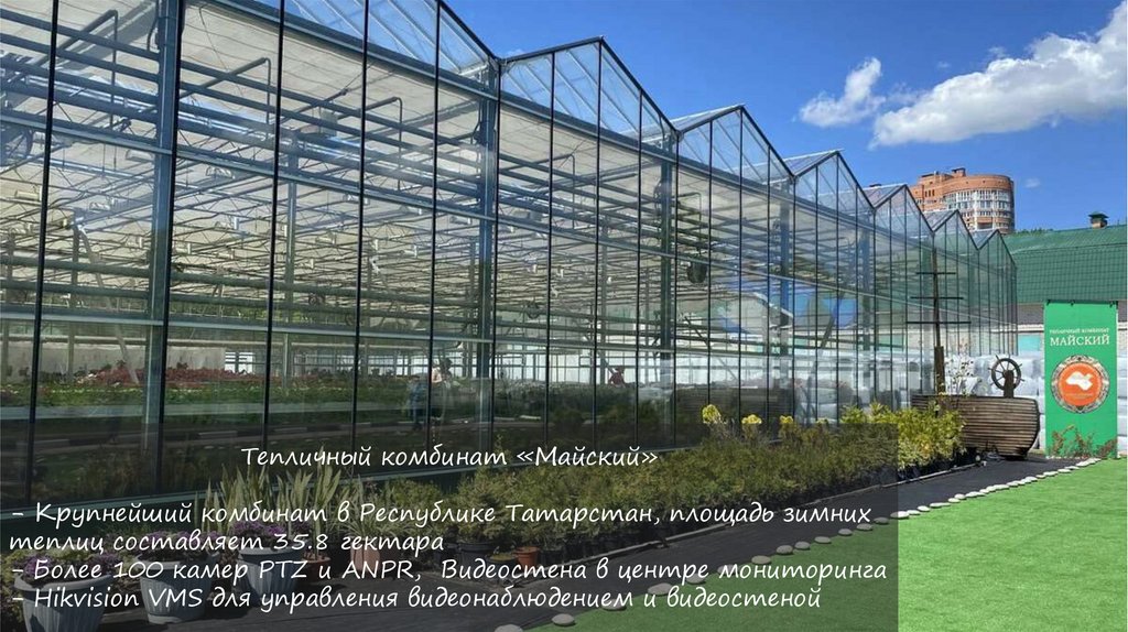 Тепличный комбинат «Майский»- Крупнейший комбинат в Республике Татарстан, площадь зимних