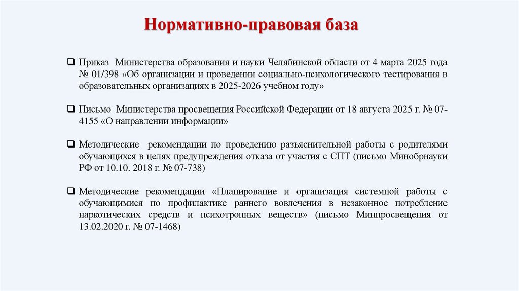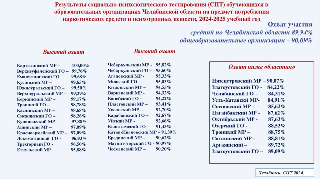 Результаты социально-психологического тестирования (СПТ) обучающихся вобразовательных организациях Челябинской области на предмет потребления