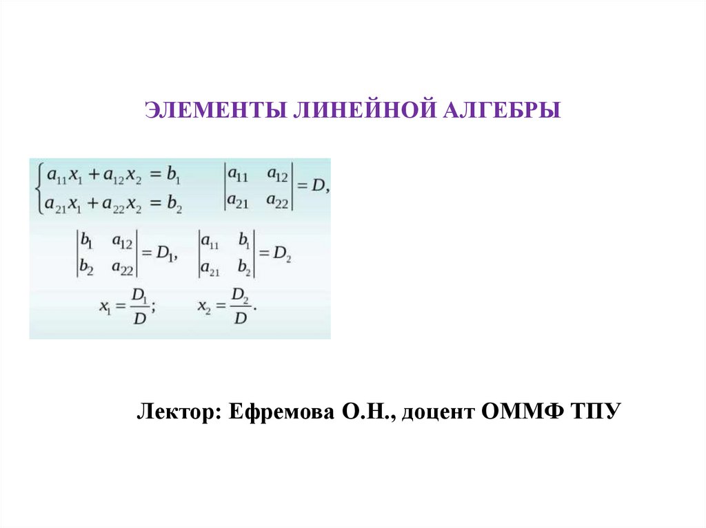 ЭЛЕМЕНТЫ ЛИНЕЙНОЙ АЛГЕБРЫЛектор: Ефремова О.Н., доцент ОММФ ТПУ