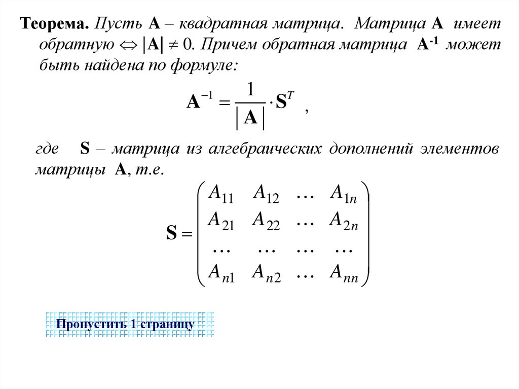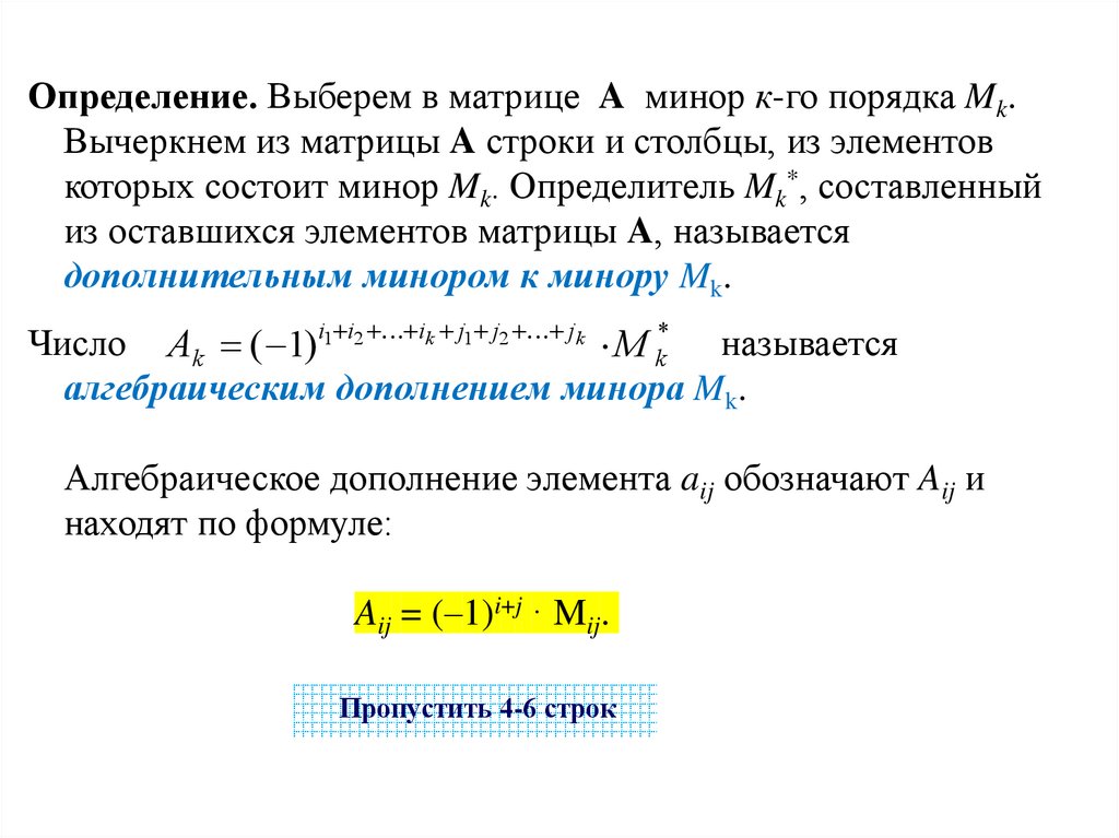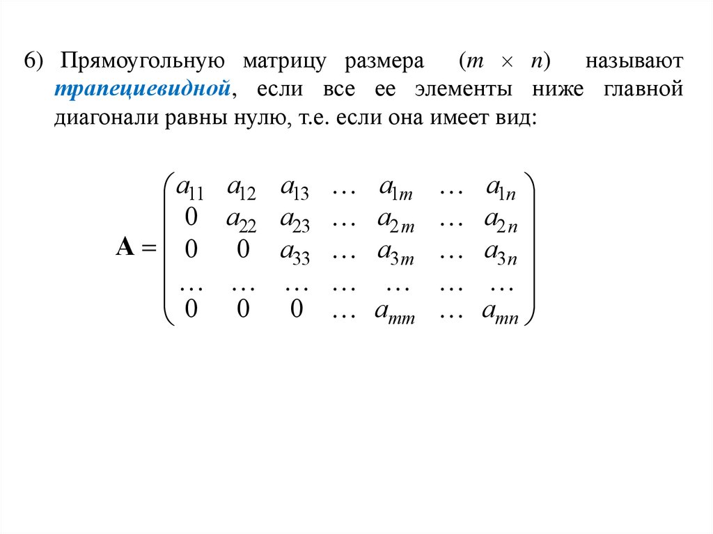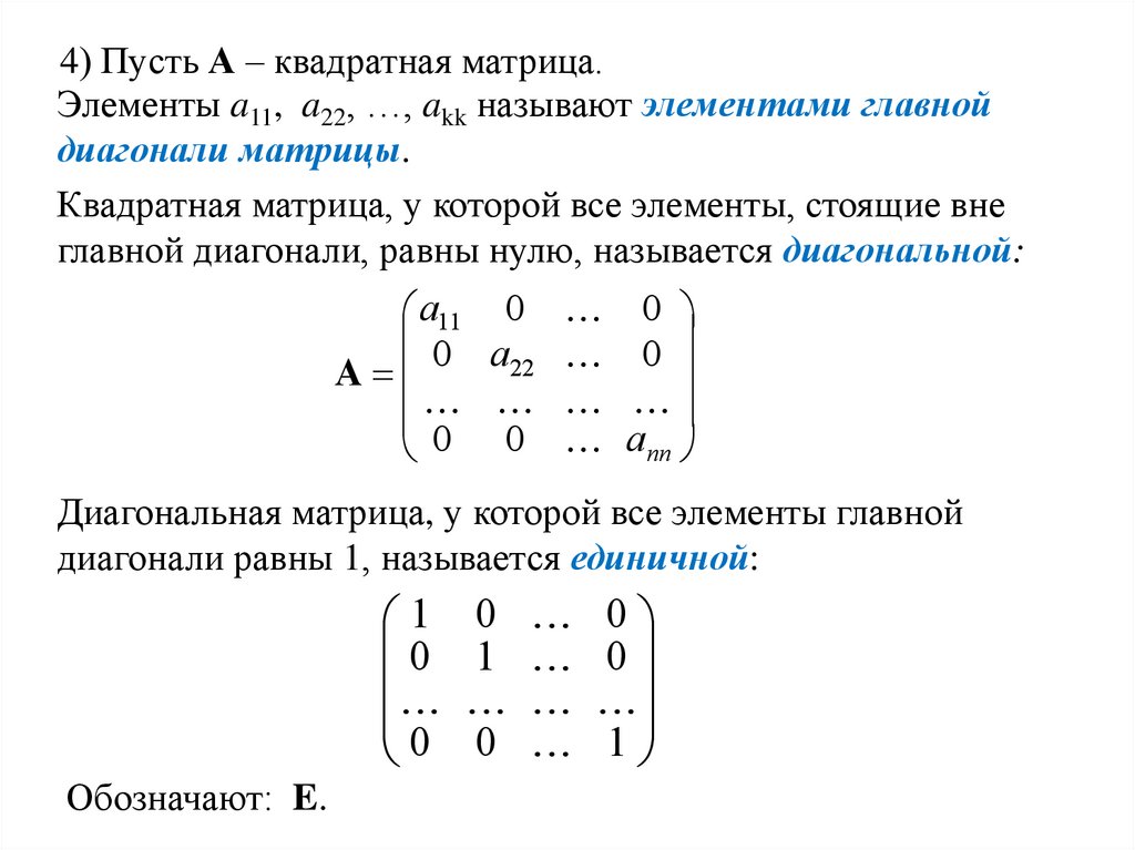4) Пусть А – квадратная матрица.Элементы a11, a22, …, akk называют элементами главной