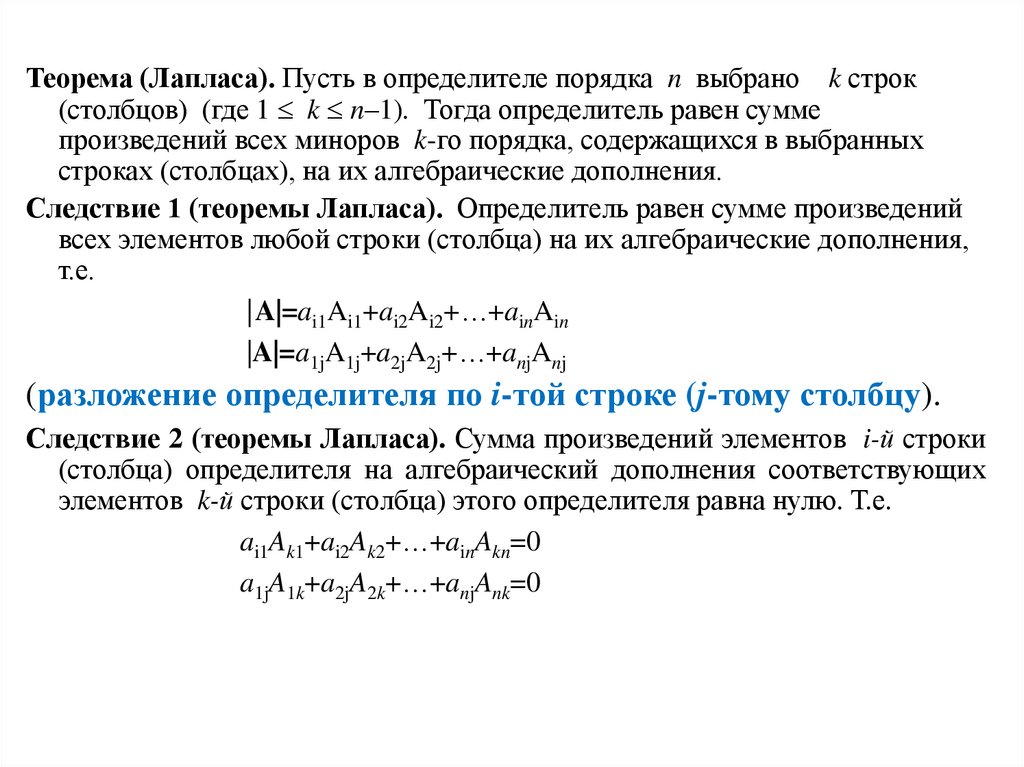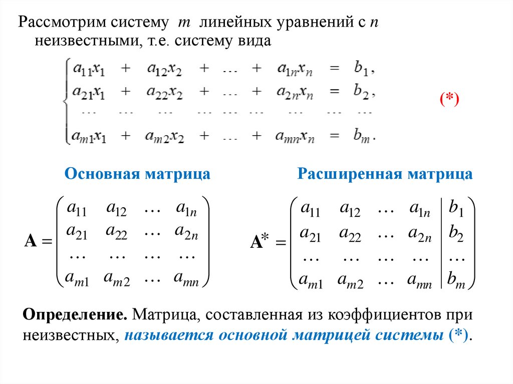 Теорема (Крамера). Если в системе линейных уравнений числоуравнений m и число неизвестных n совпадает и