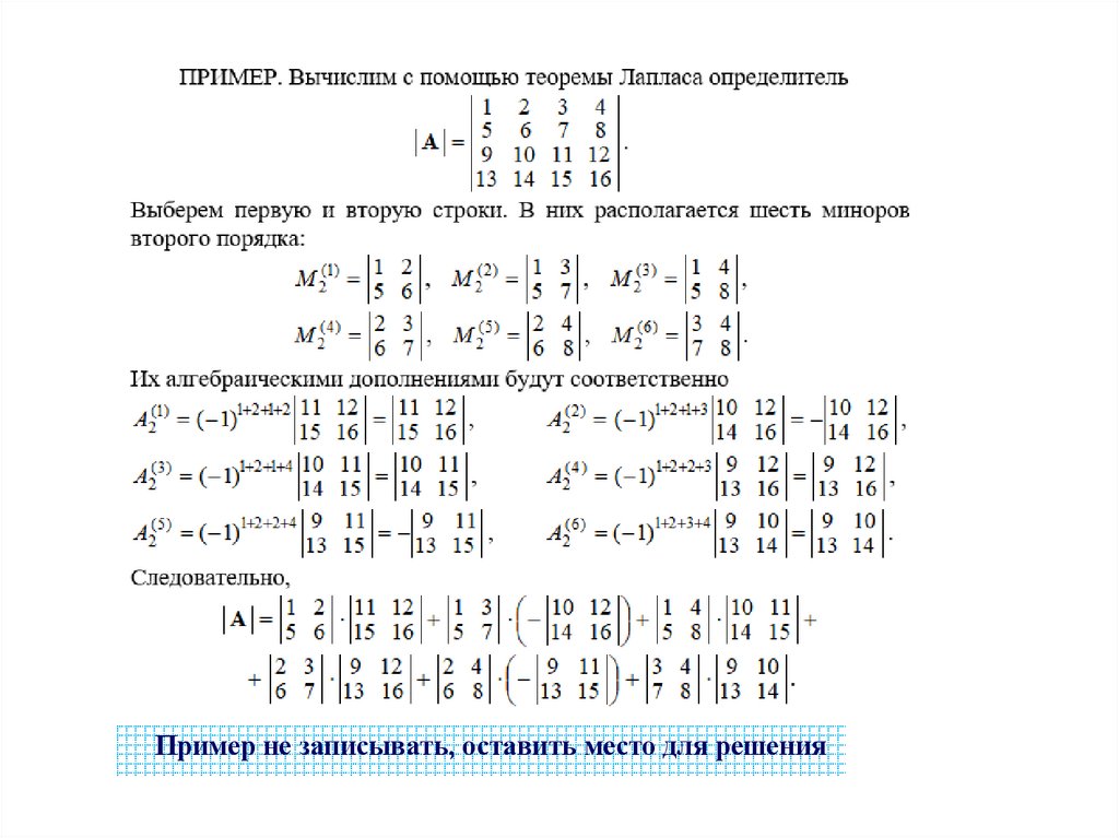 2. Выбираем любой, отличный от нуля, определитель порядка