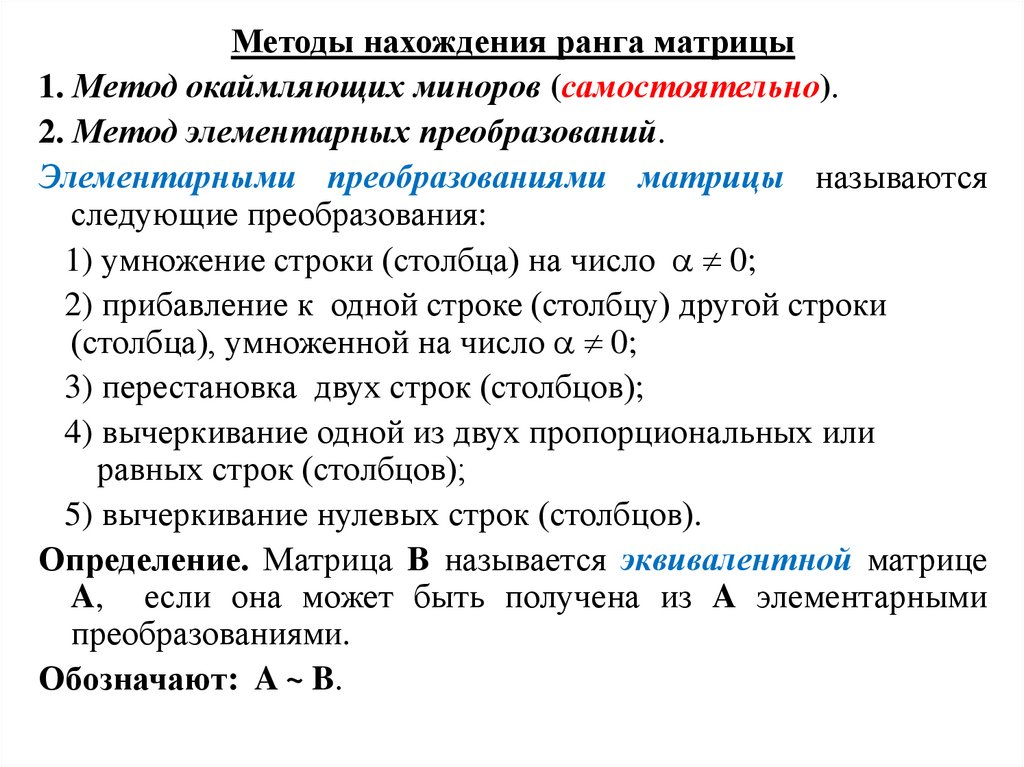 Элементарными преобразованиями системы линейныхуравнений называются преобразования следующего вида: