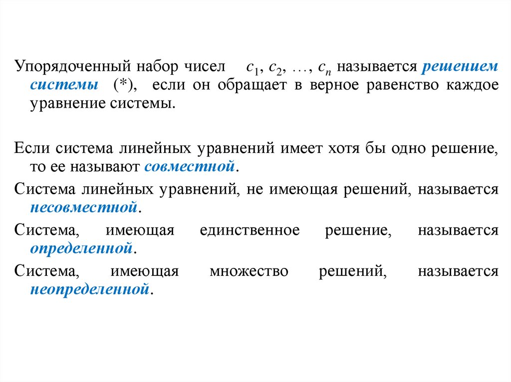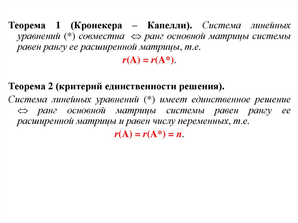 Если r(A) r(A*), то СЛУ не имеет решения.