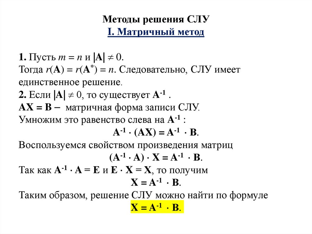 Если r(A) = r(A*) = n, то СЛУ имеет единственное решение.