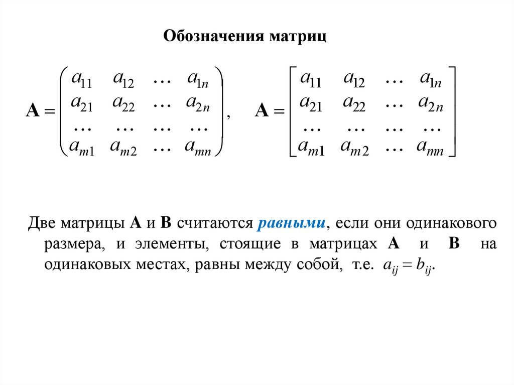 Определение. Матрицей размера m n называется таблица,образованная из элементов некоторого множества