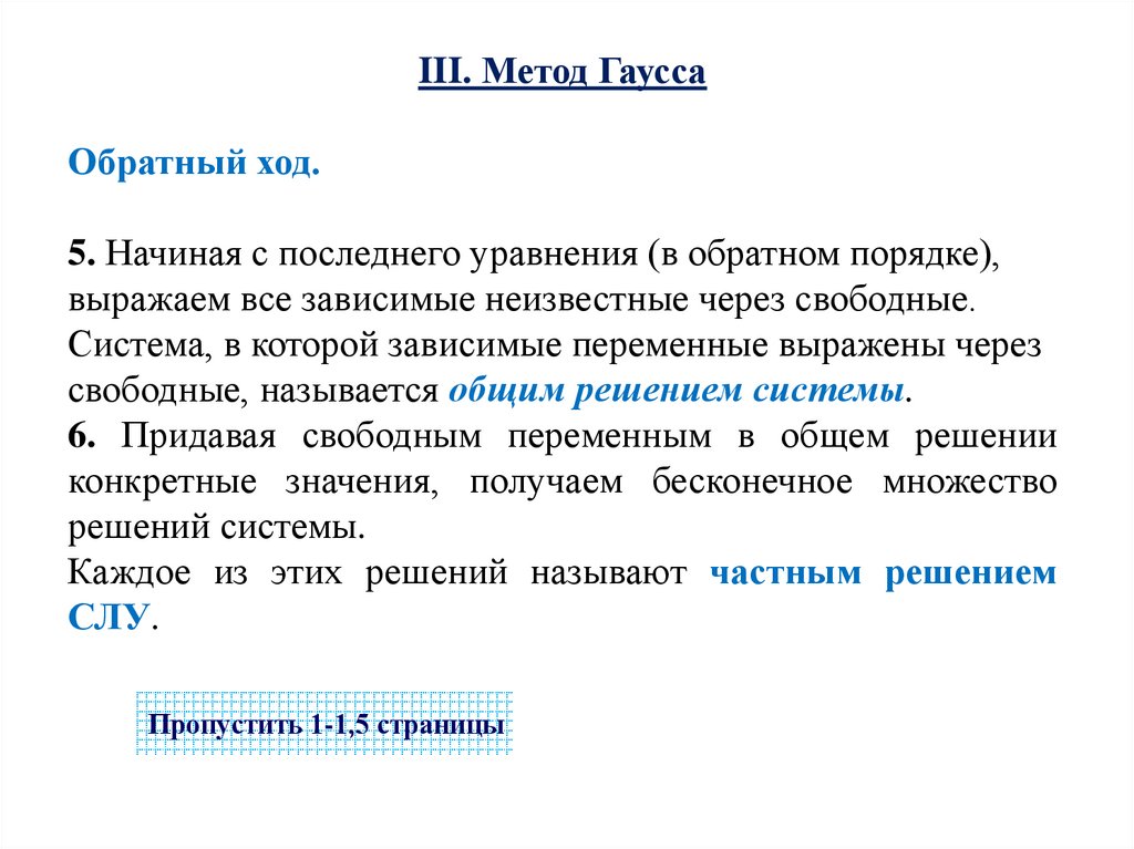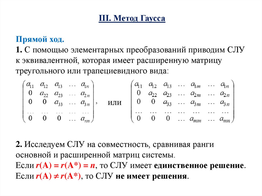 40. III. Метод Гаусса (метод исключения неизвестных)