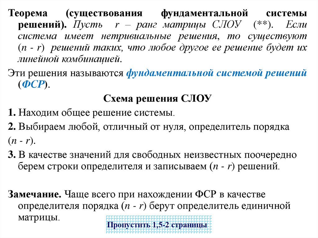 решений). Пусть r – ранг матрицы СЛОУ (**). Если