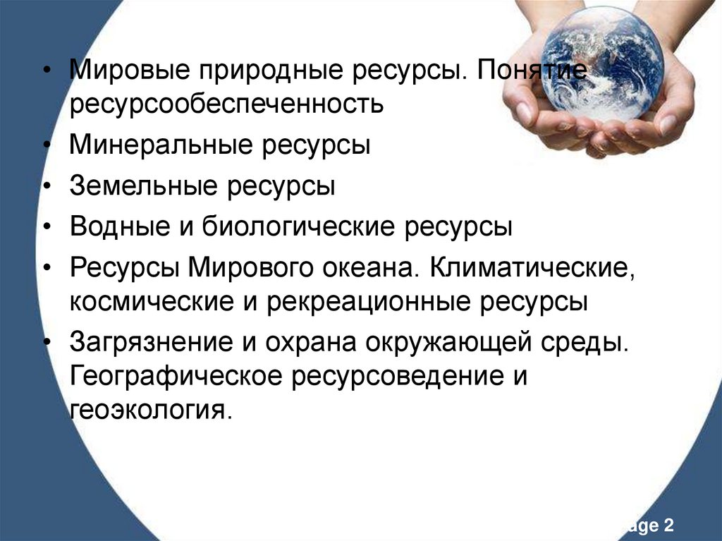 • Мировые природные ресурсы. Понятиересурсообеспеченность