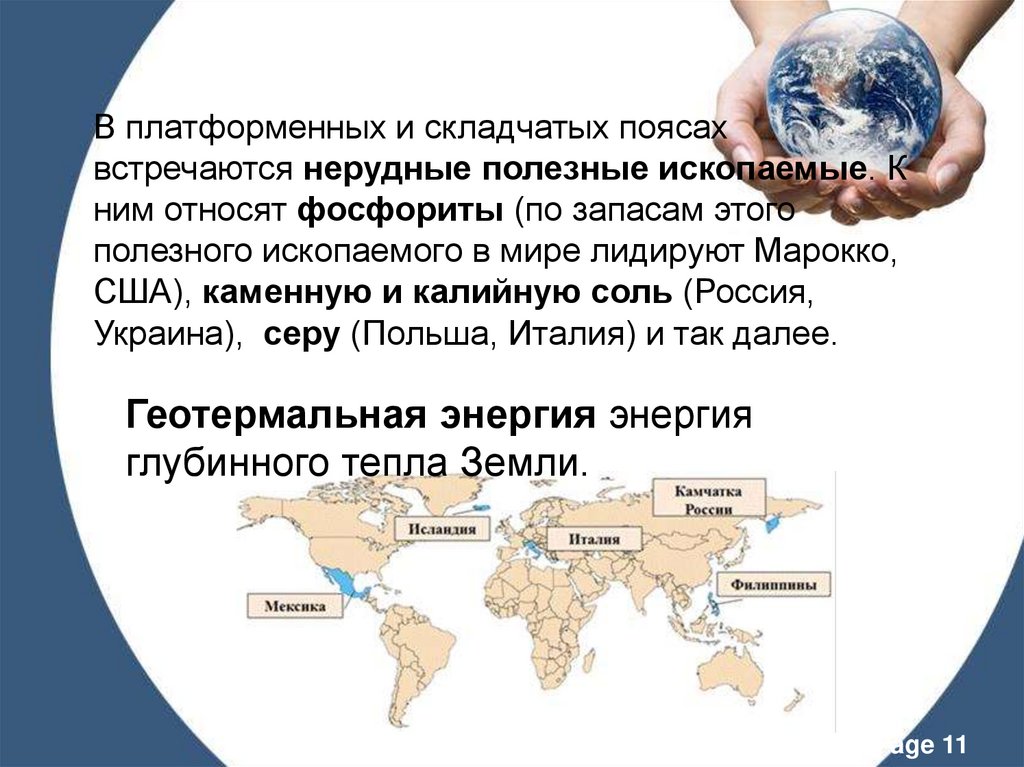 В платформенных и складчатых поясахвстречаются нерудные полезные ископаемые. К