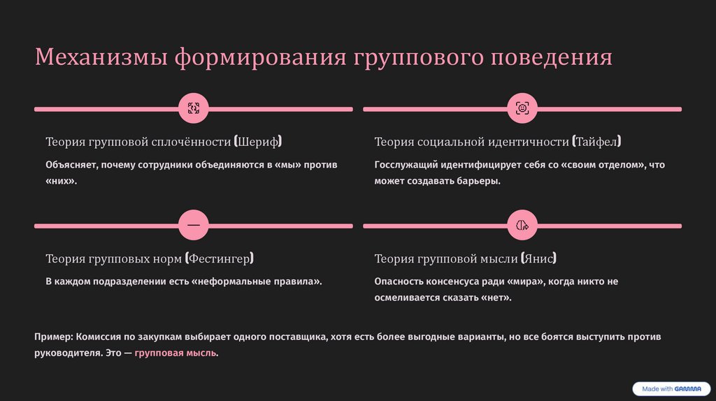 Механизмы формирования группового поведенияТеория групповой сплочённости (Шериф)