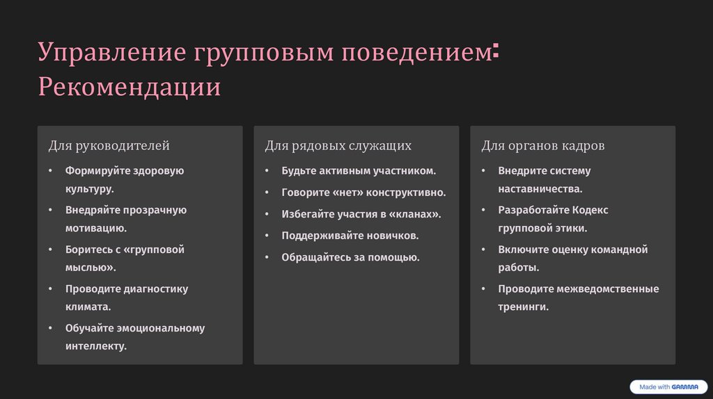 Формирование у государственных служащих понятий группового поведения, навыков управления групповыми