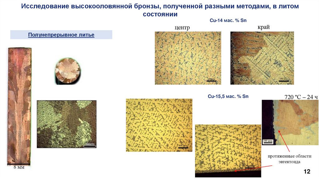 Оловянная бронза: характерные особенности структуры и полученияБронза полученная непрерывным литьем
