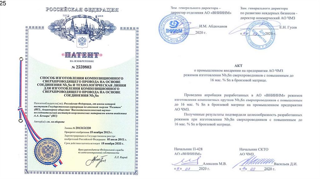 • Разработаны конструкции и технологические режимы изготовления сверхпроводников на основе