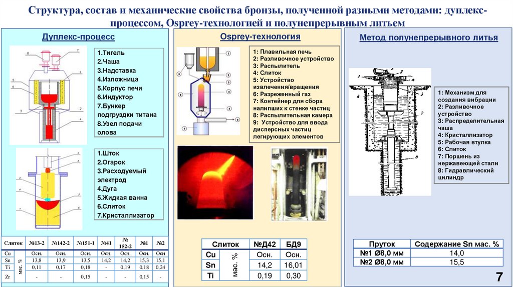 Структура, состав и механические свойства бронзы, полученной разными методами: дуплекспроцессом, Osprey-технологией и полунепрерывным литьемДуплекс-процесс