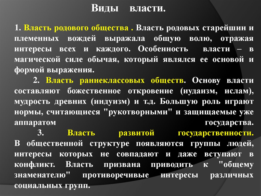 Виды власти.1. Власть родового общества . Власть родовых старейшин и