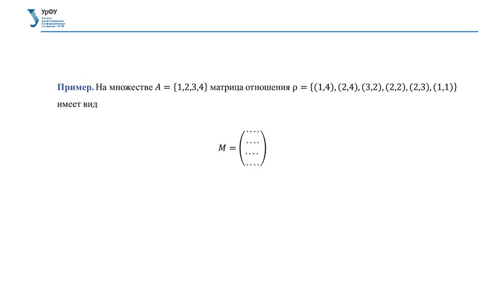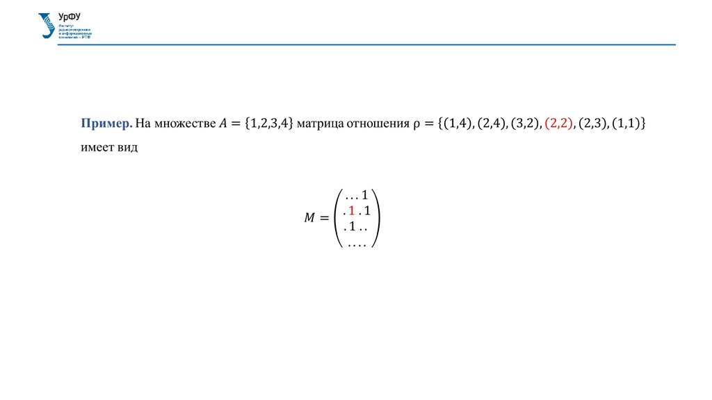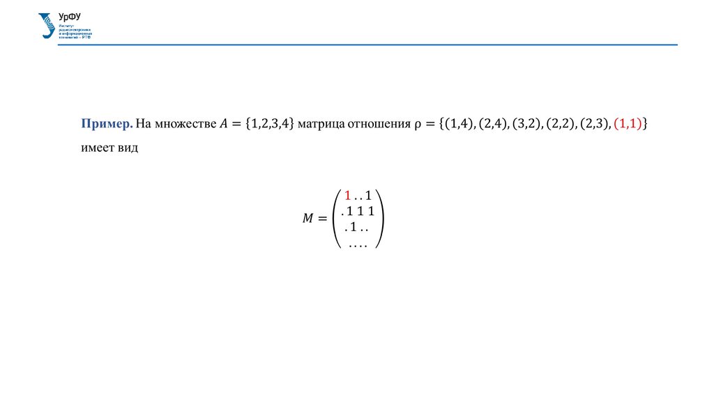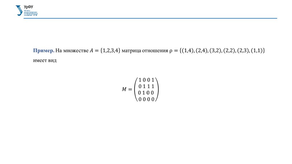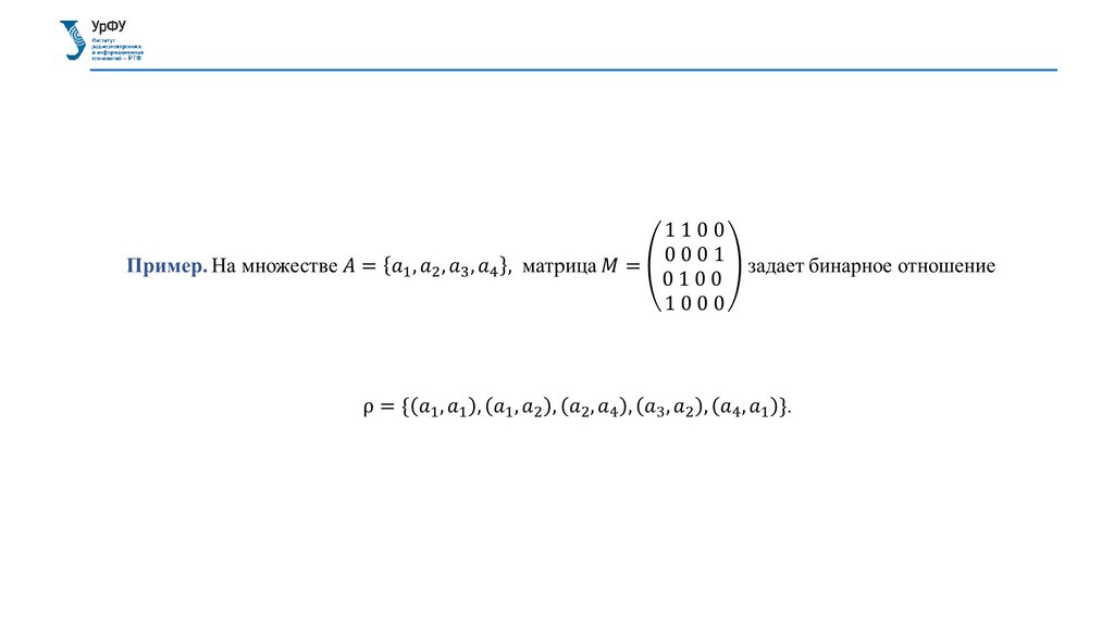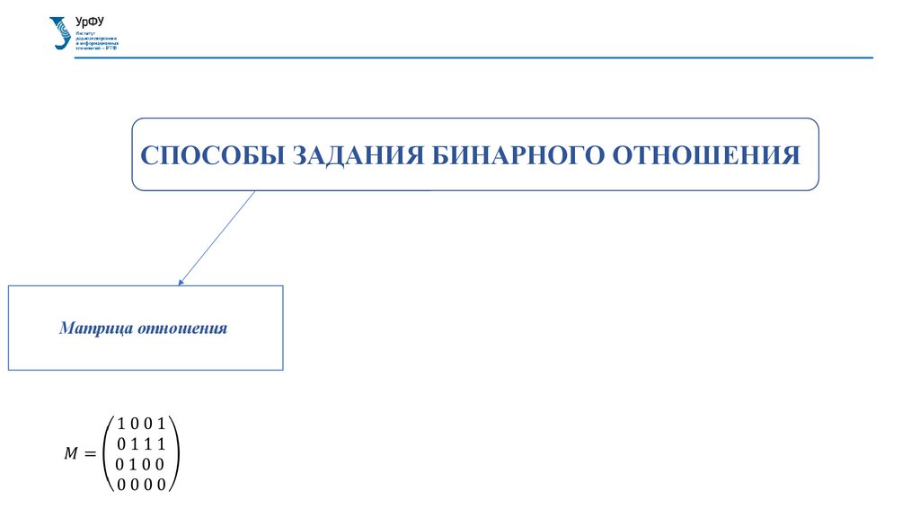СПОСОБЫ ЗАДАНИЯ БИНАРНОГО ОТНОШЕНИЯМатрица отношения