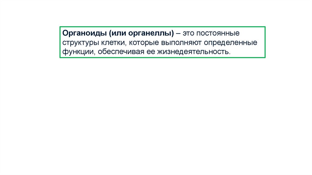 Органоиды (или органеллы) – это постоянныеструктуры клетки, которые выполняют определенные