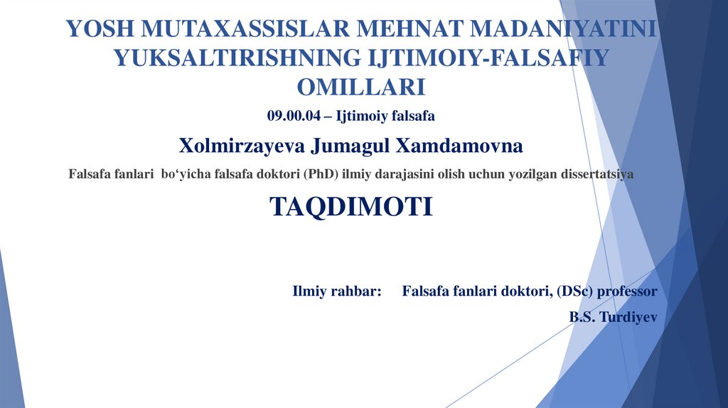 09.00.04 – Ijtimoiy falsafaXolmirzayeva Jumagul Xamdamovna