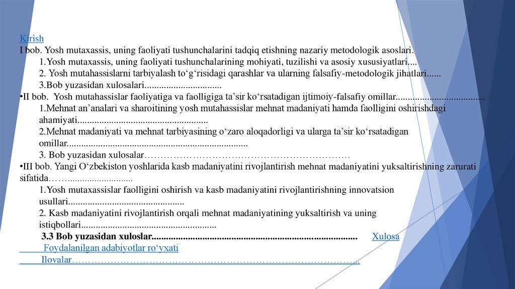 1. YOSH MUTAXASSISLAR MEHNAT MADANIYATINI YUKSALTIRISHNING IJTIMOIY-FALSAFIY OMILLARI