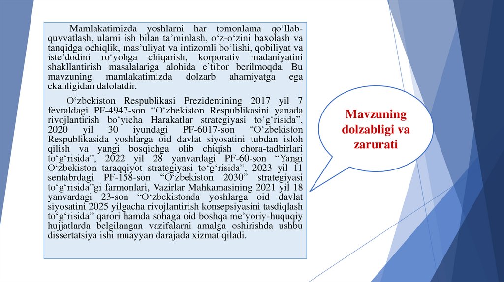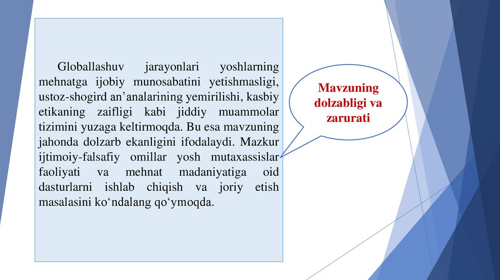 mavzuning mamlakatimizda dolzarb ahamiyatga ega