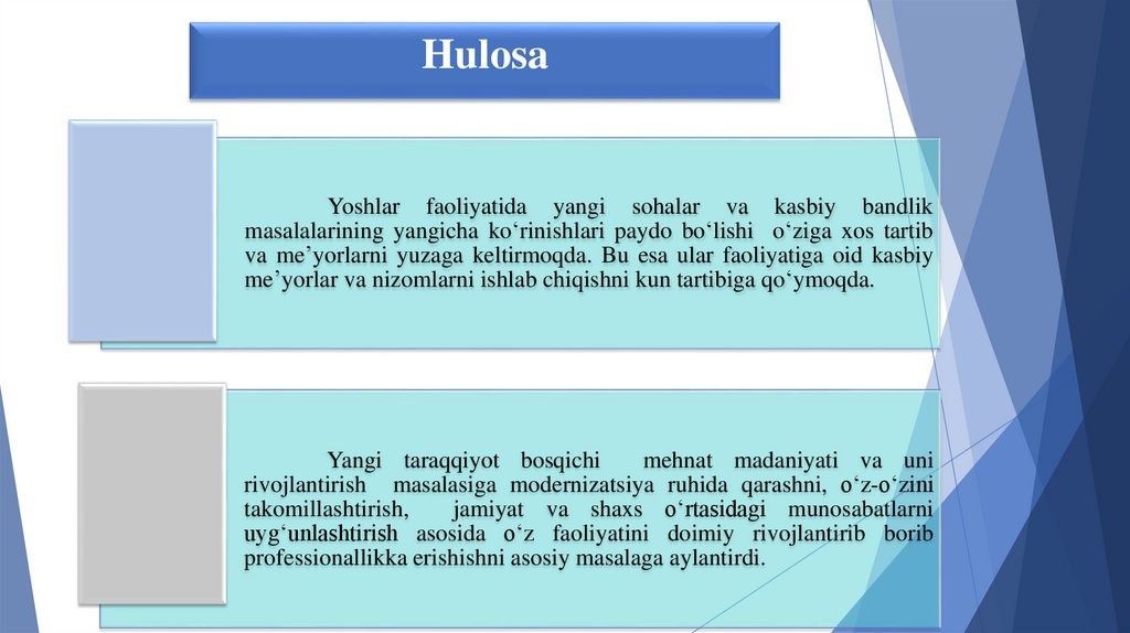 HulosaYoshlar faoliyatida yangi sohalar va kasbiy bandlik