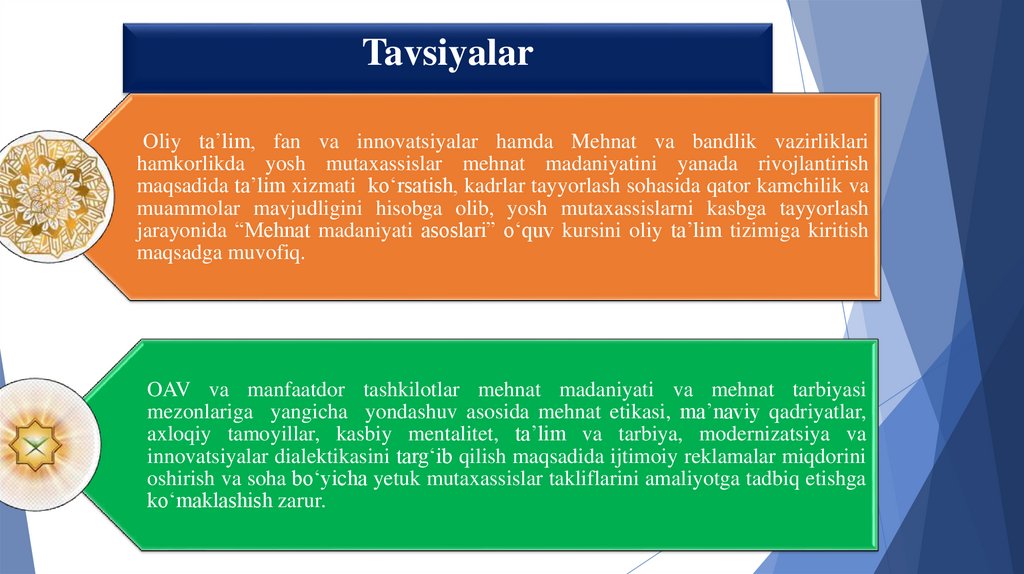 TavsiyalarOliy ta’lim, fan va innovatsiyalar hamda Mehnat va bandlik vazirliklari