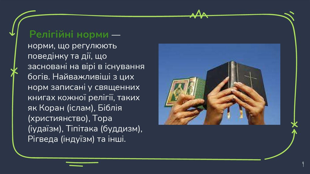 Релігійно-правові норми — санкціонованідержавою церковні канони та інші релігійні