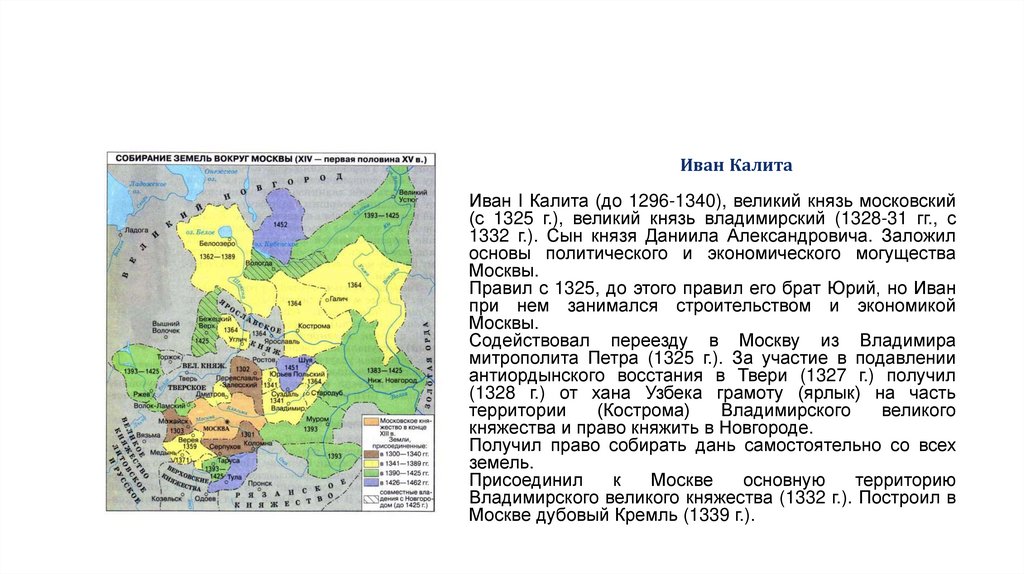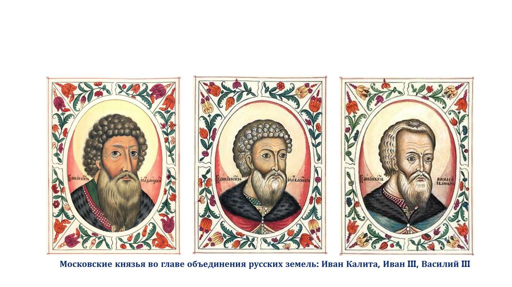 Московские князья во главе объединения русских земель: Иван Калита, Иван III, Василий III91