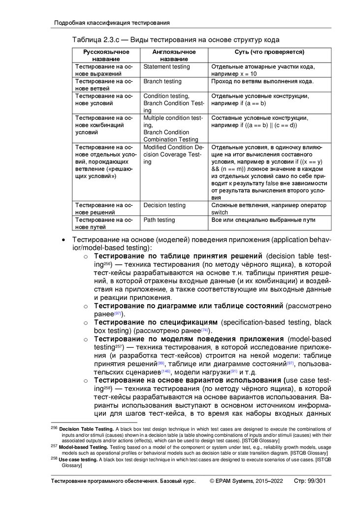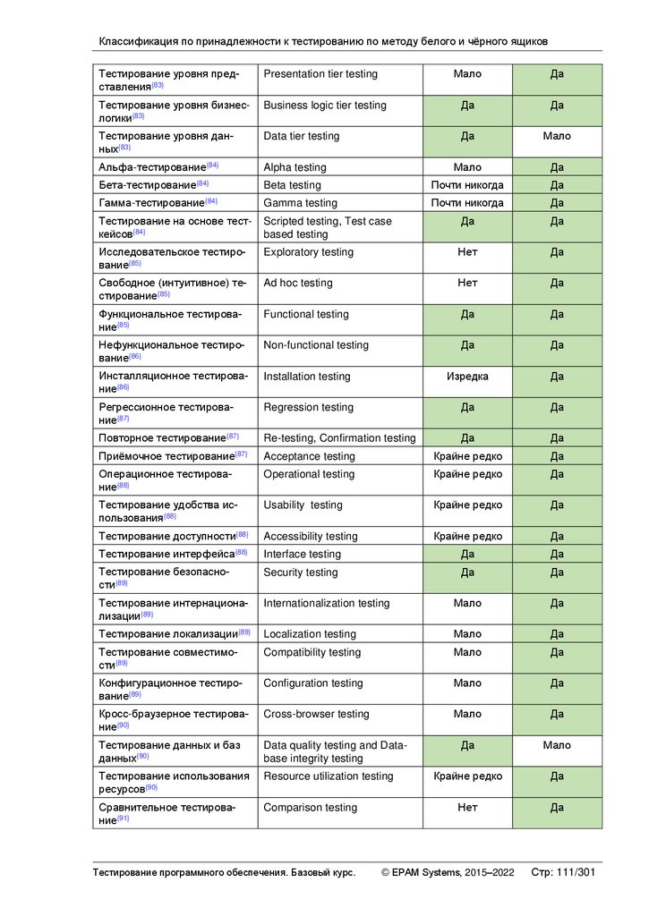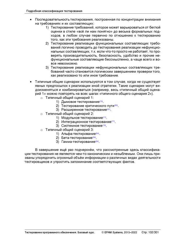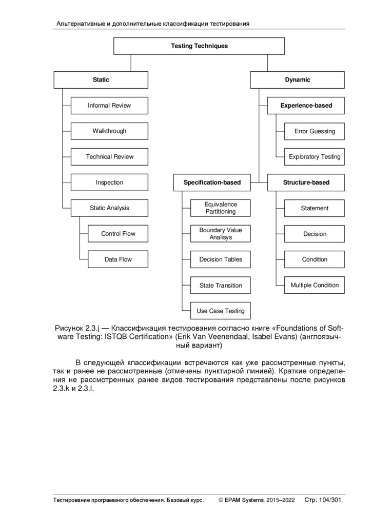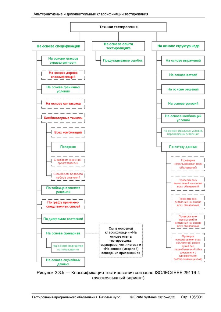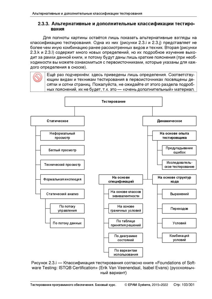 Альтернативные и дополнительные классификации тестирования ............ 103