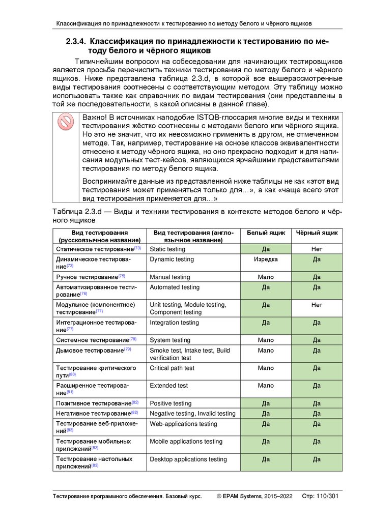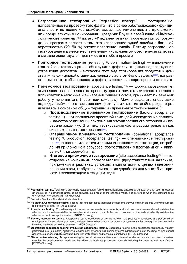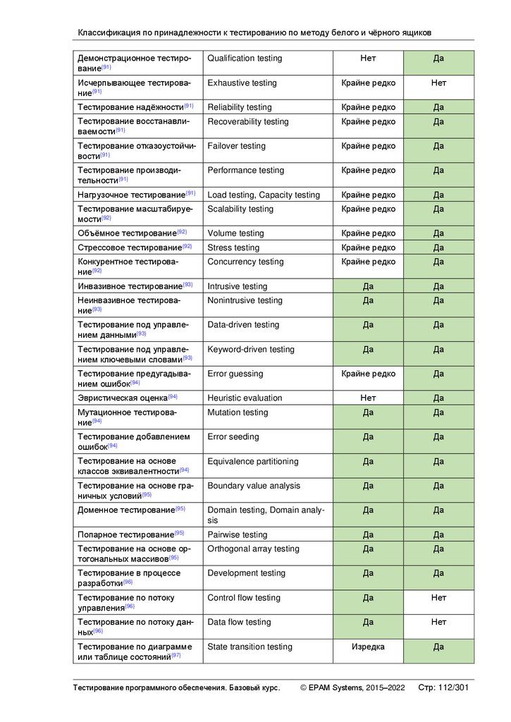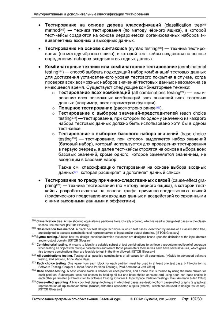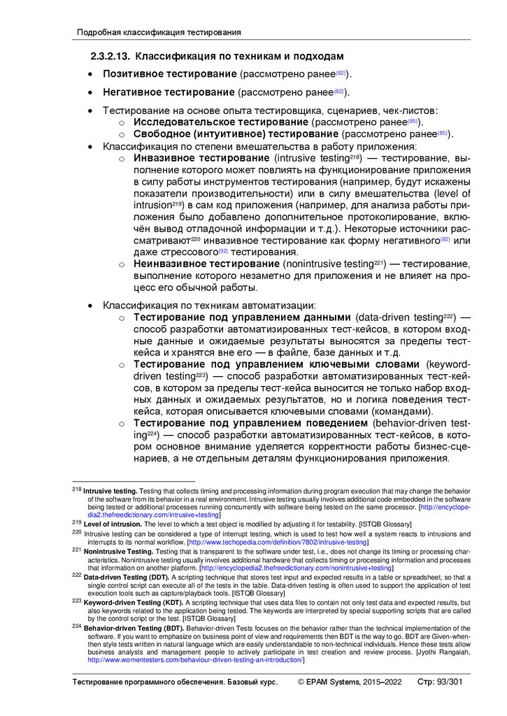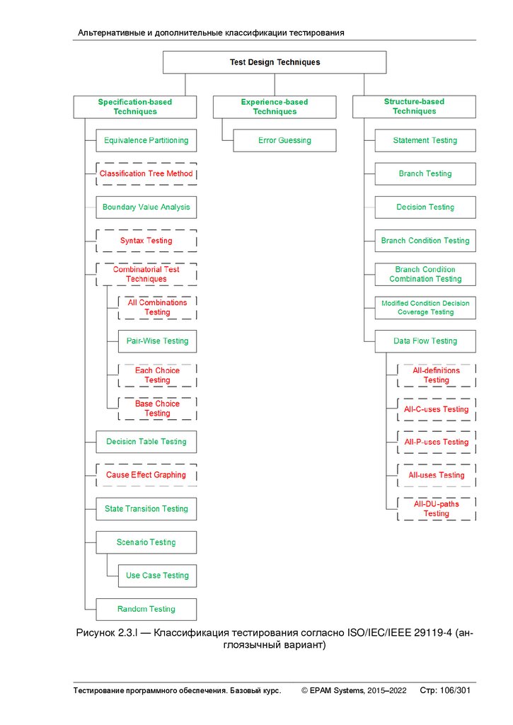 Альтернативные и дополнительные классификации тестирования ............ 103