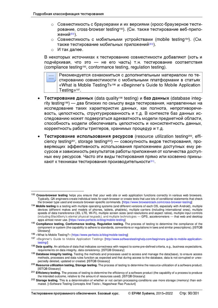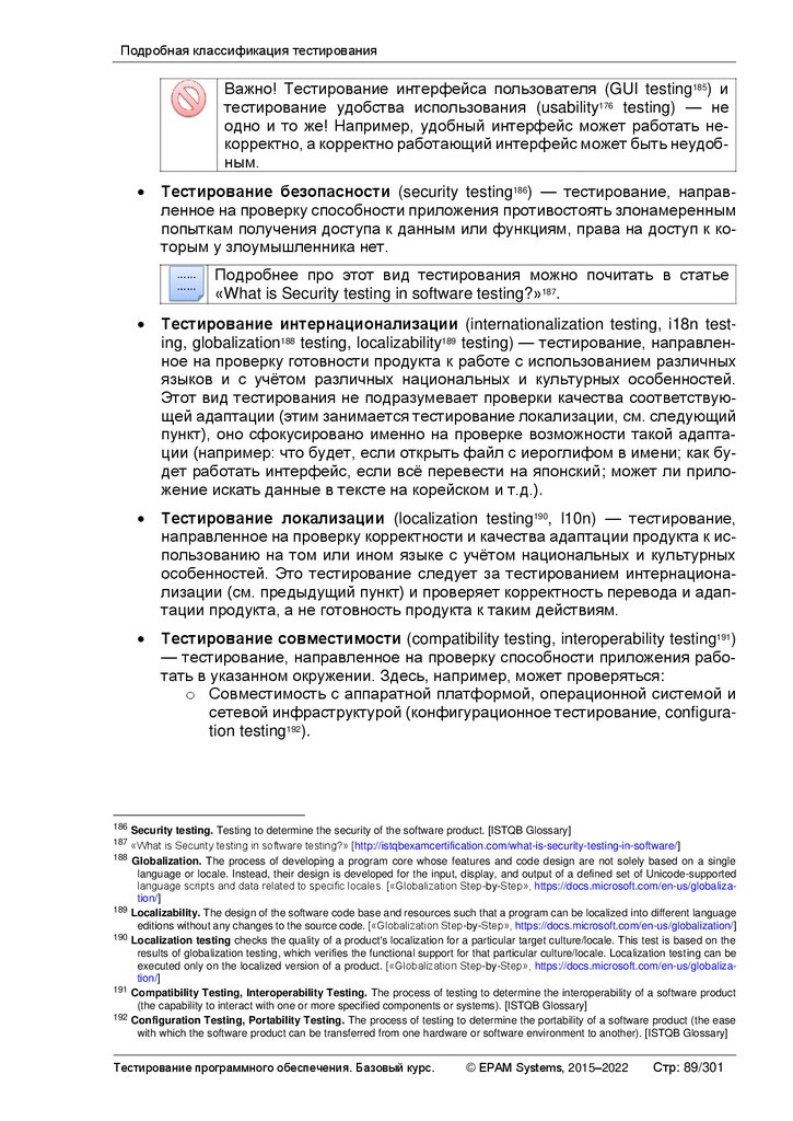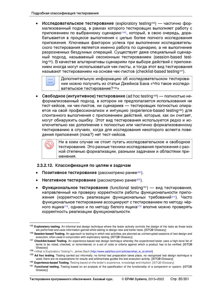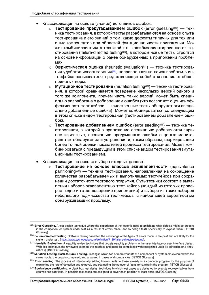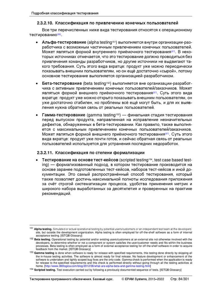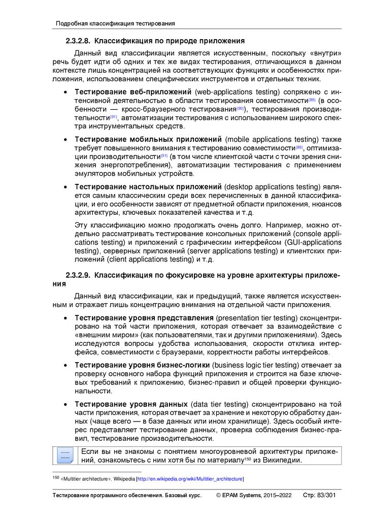 Альтернативные и дополнительные классификации тестирования ............ 103