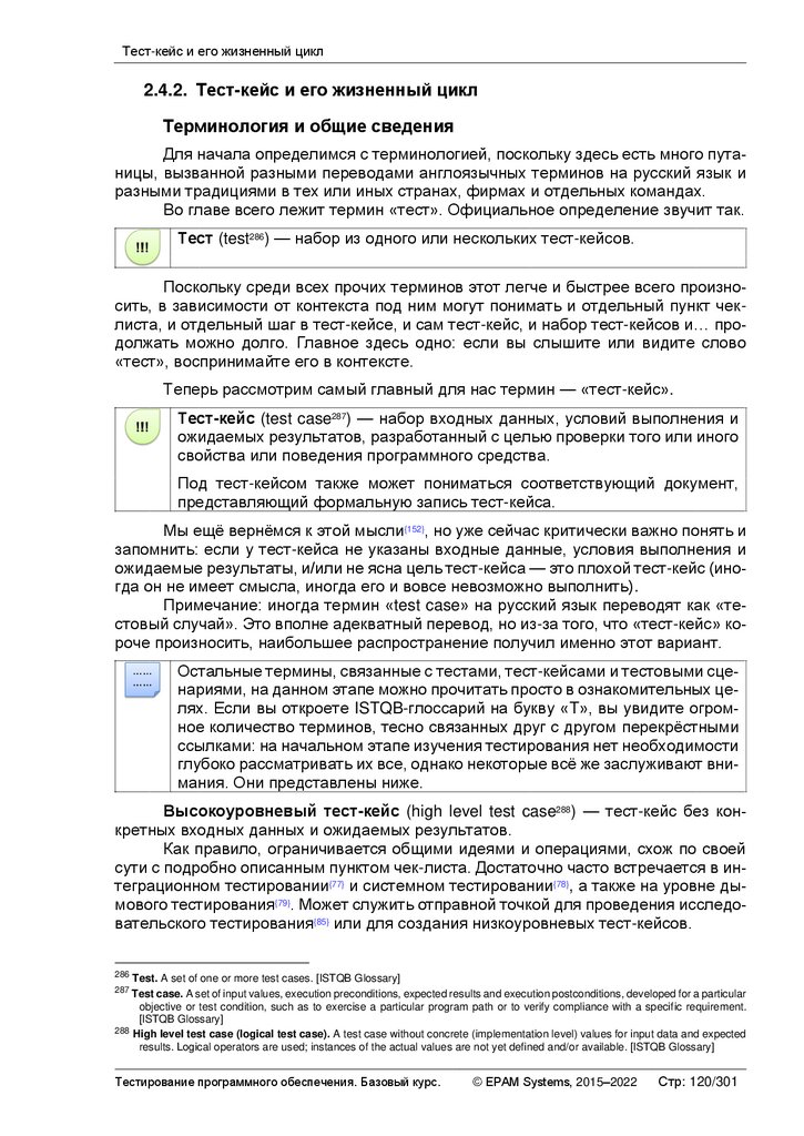 Тест-кейс и его жизненный цикл ................................................................................. 120