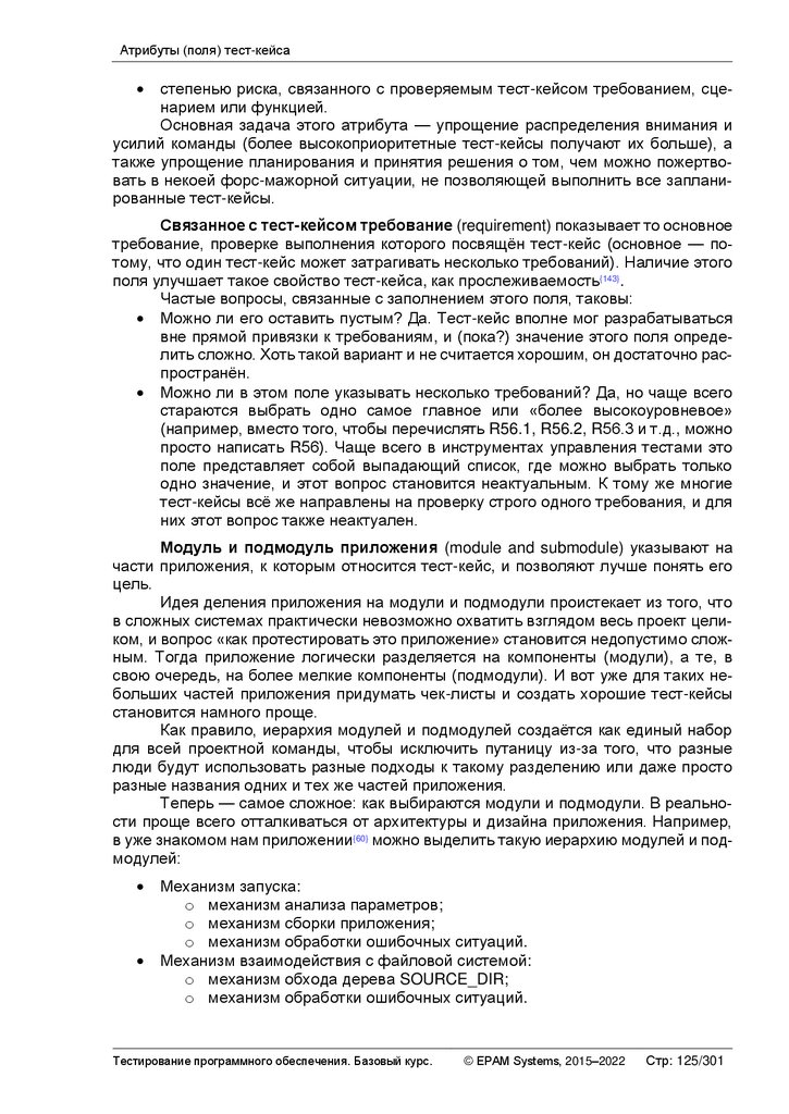Атрибуты (поля) тест-кейса ..................................................................................... 124
