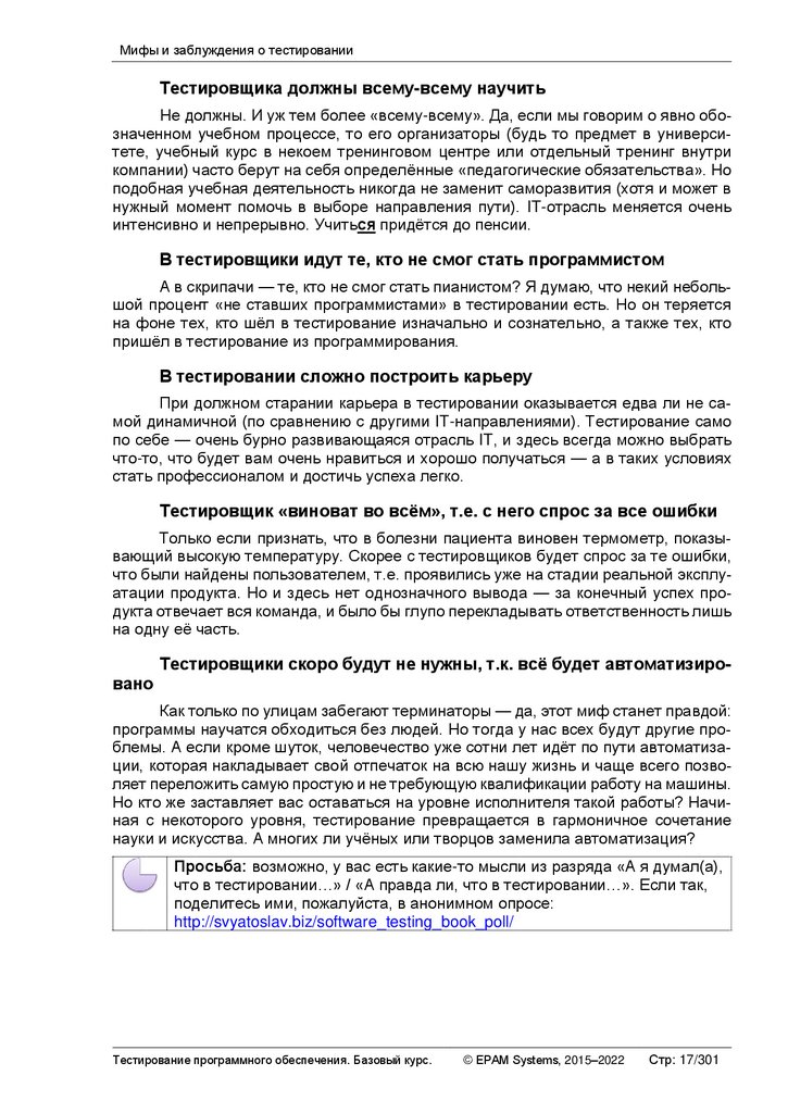 МИФЫ И ЗАБЛУЖДЕНИЯ О ТЕСТИРОВАНИИ ......................................................................... 16