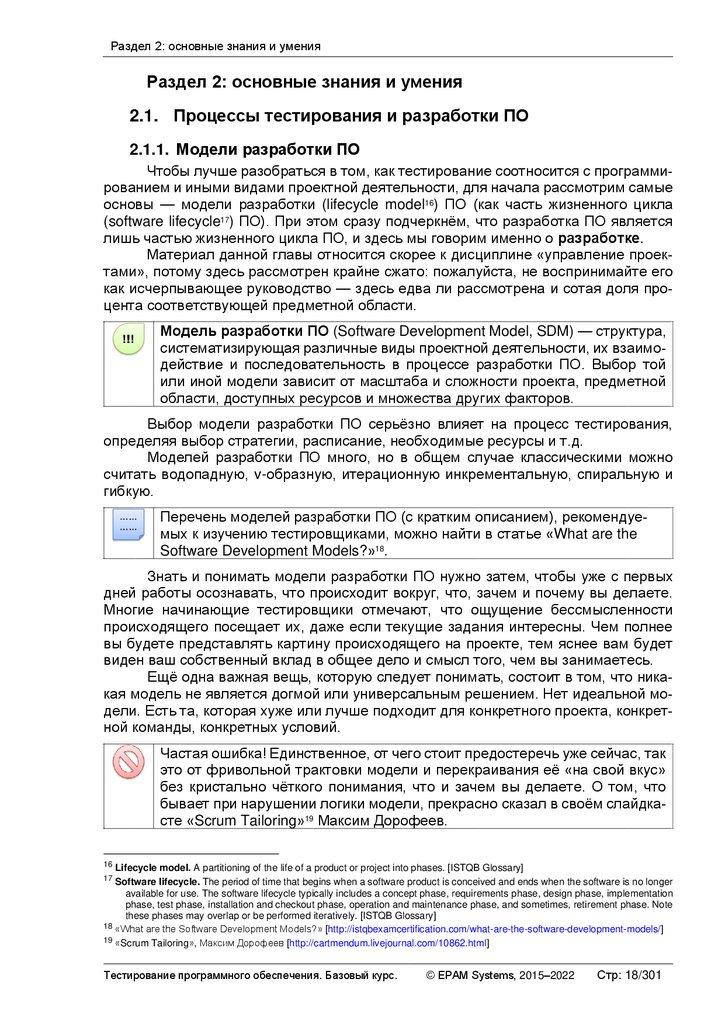 ПРОЦЕССЫ ТЕСТИРОВАНИЯ И РАЗРАБОТКИ ПО ................................................................. 18