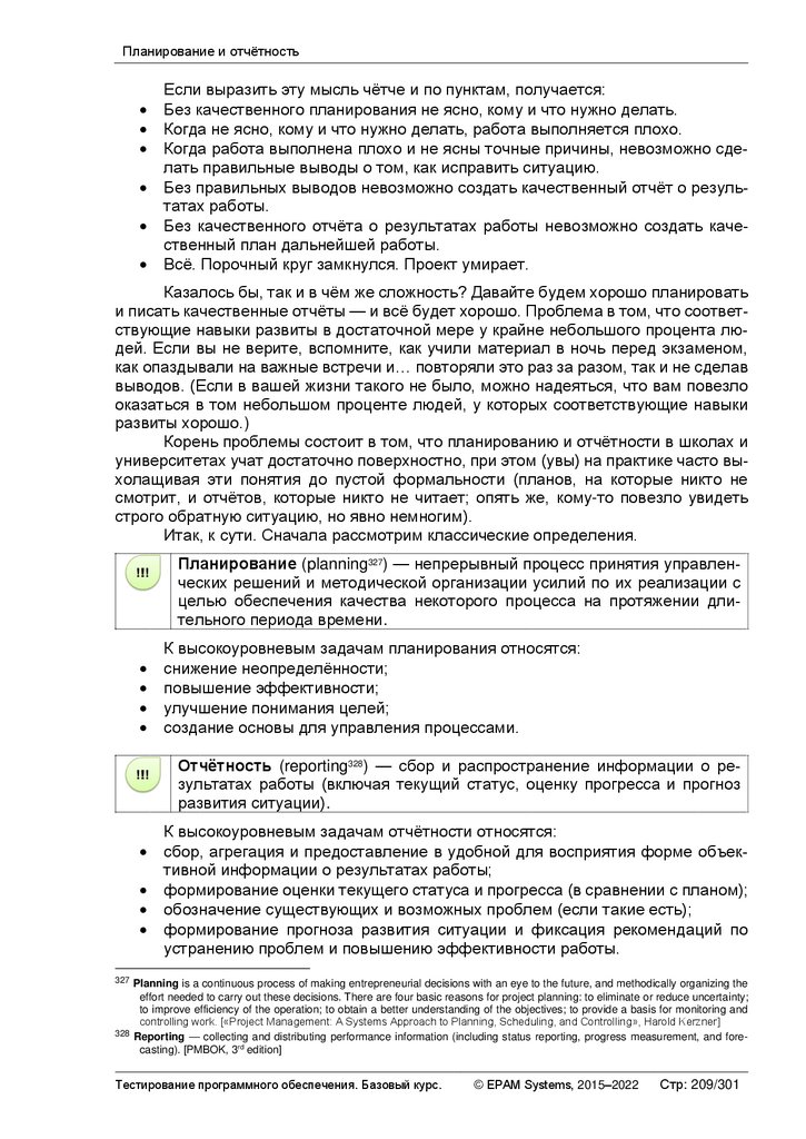 o Критерии приостановки тестирования (suspension criteria334) — перечень условий, при выполнении которых тестирование приостанавливается. Наличие этого критерия также страхует команду от бессмысленной траты усилий в условиях, когда тестирование не принесёт ожидаемой пользы.