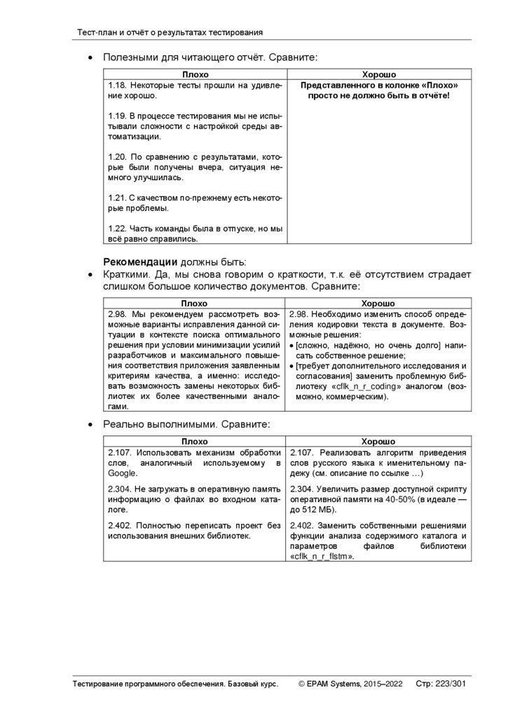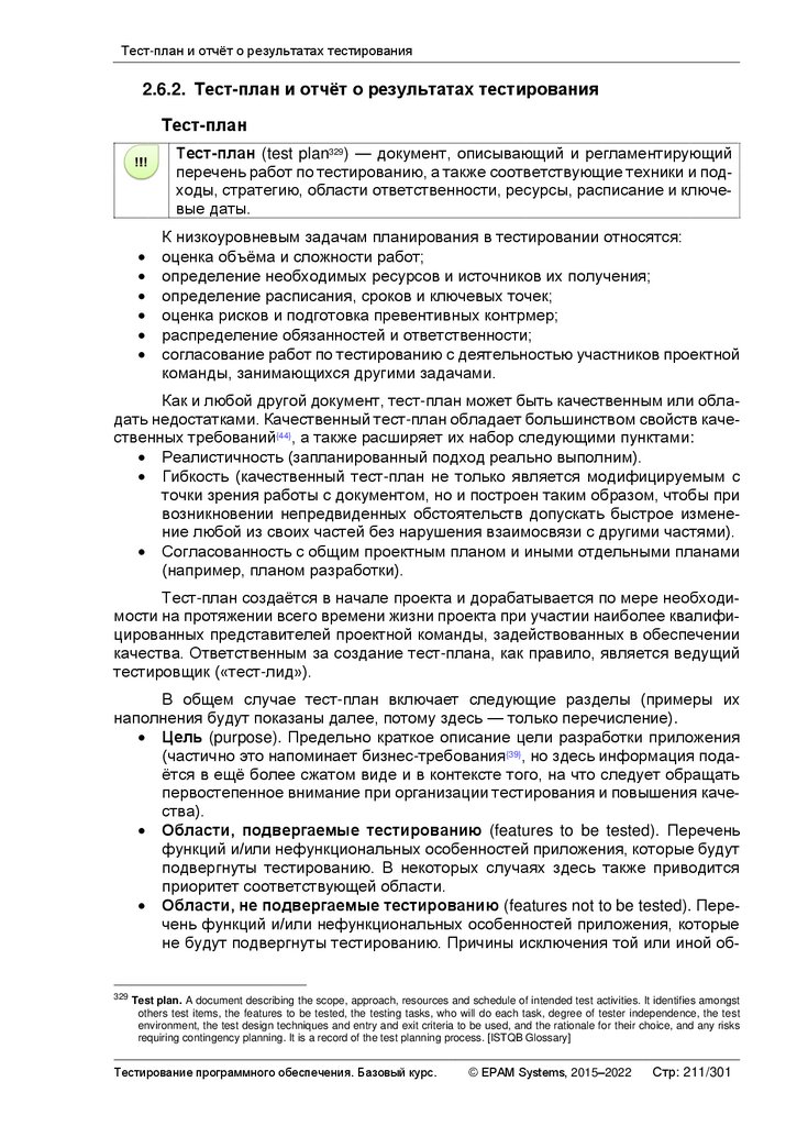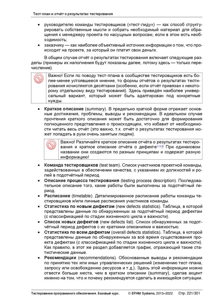 Тест-план и отчёт о результатах тестированияласти из списка тестируемых могут быть самыми различными — от предельно низкой их важности для заказчика до нехватки времени или иных ресурсов. Этот перечень составляется, чтобы у проектной команды и иных заинтересованных лиц было чёткое единое понимание, что тестирование таких-то особенностей приложения не запланировано — такой подход позволяет исключить появление ложных ожиданий и неприятных сюрпризов.